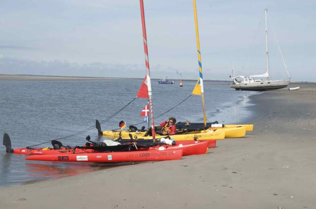 Sjov på Vadehavet, kraftig vind, bølger og medstrøm, Op mod 20 km. i timen. 🙂 / Having fun in high winds, waves and strong current, top speed around 20 km.