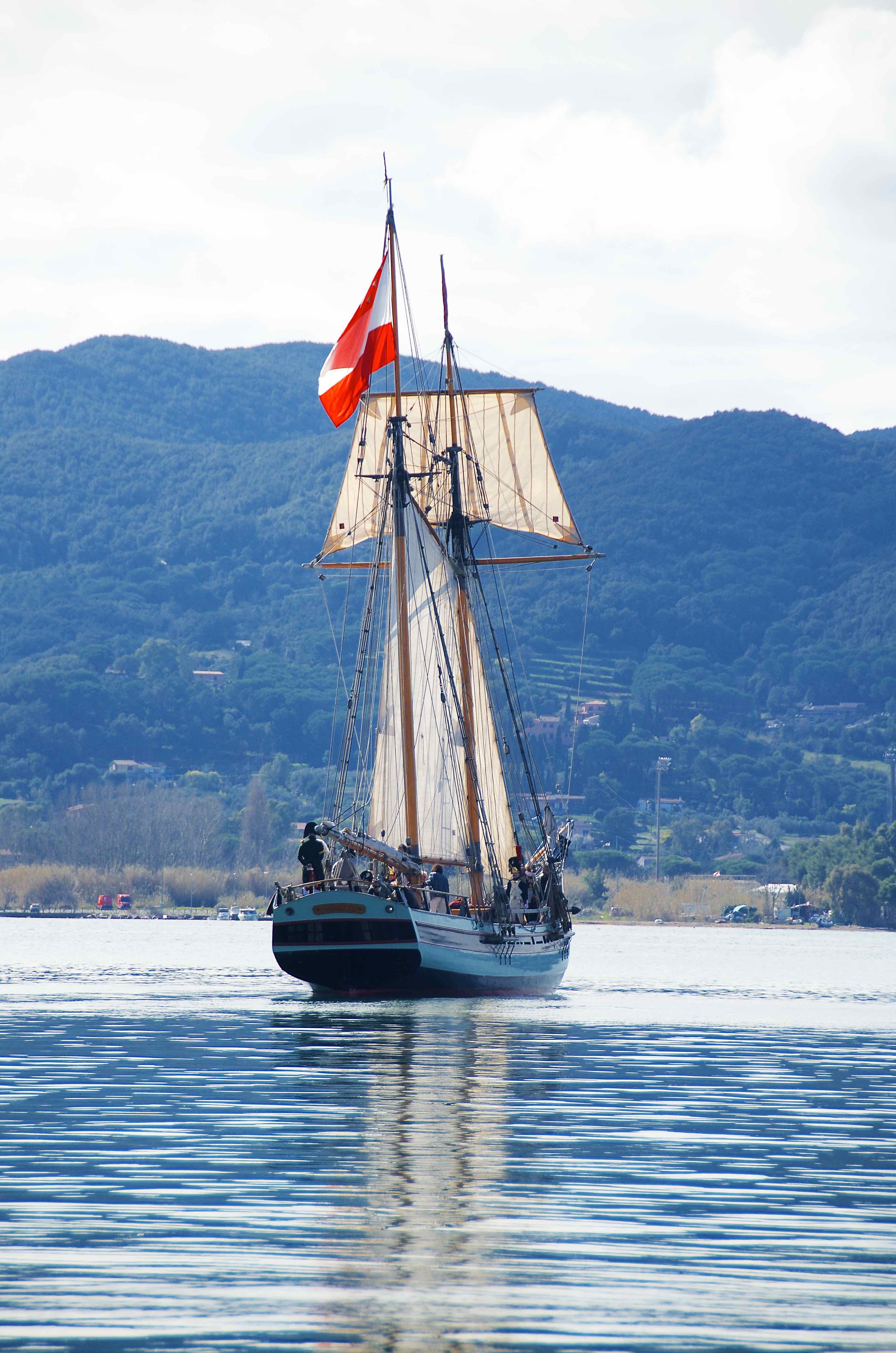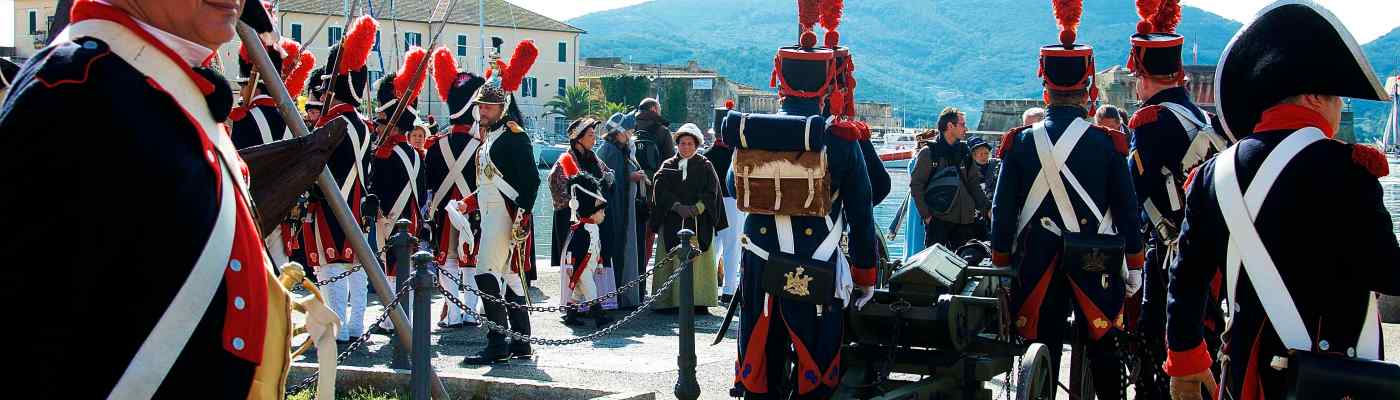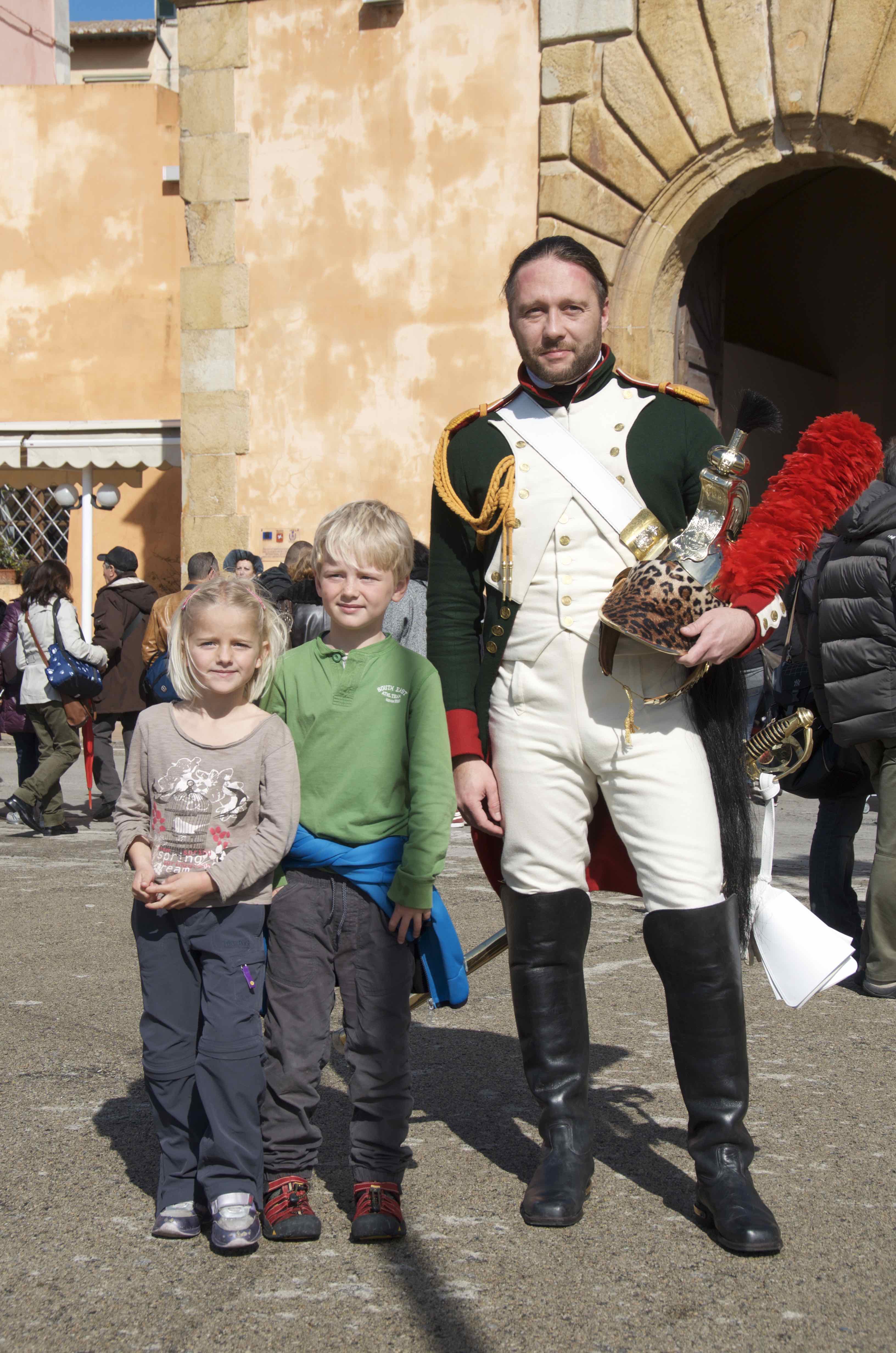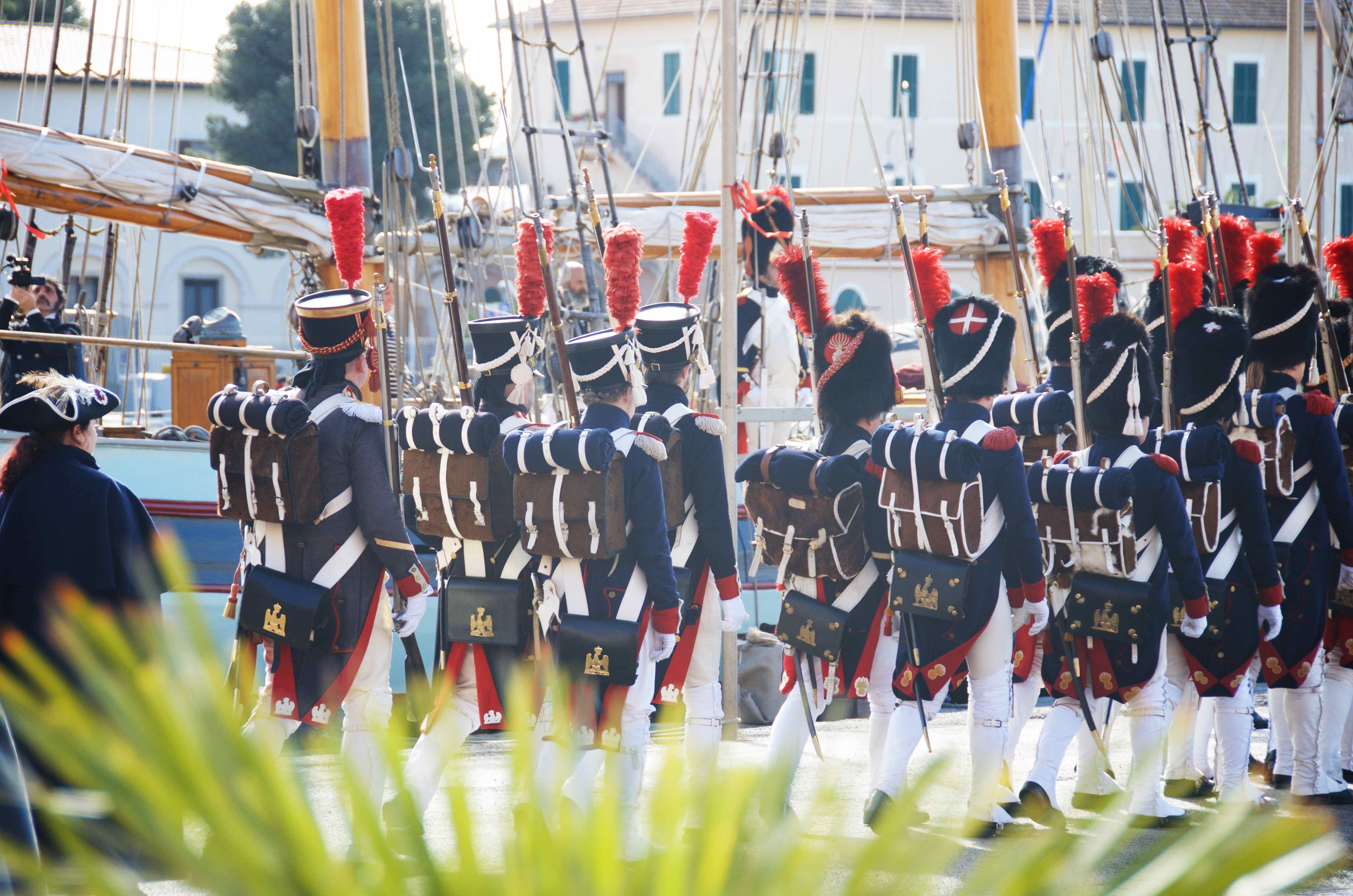 On Elba we came just in time to see Napoleon leave the Island on the ship Pandora… / Vi komme lige som ceremonien for Napoleons afsked starter… / We komen net op tijd aan om Napoleon te zien vertrekken aanboord van de Pandora…