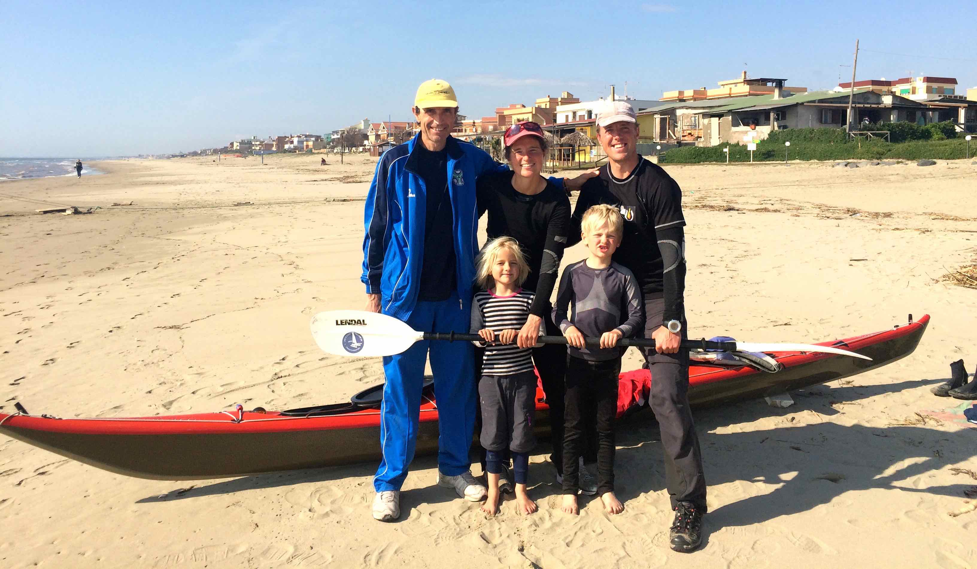 Antonio with whom we had dinner, came with us the whole day to Torvaianica, nice! / Antonio som vi var hjemme og have middag hos, padlede med hele vejen til Torvaianica / Antonio is met ons mee gekajakt naar Torvaianica, super!