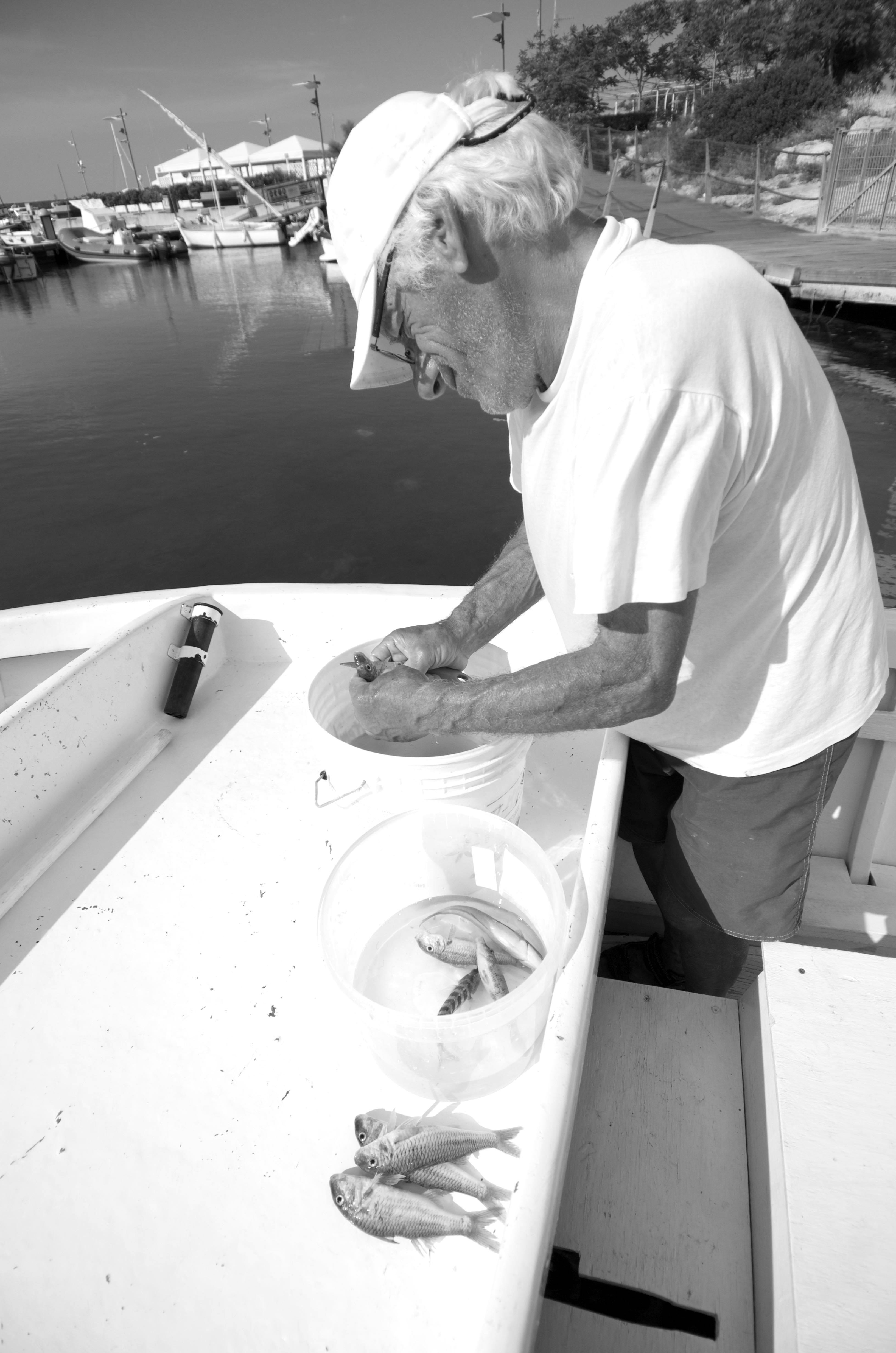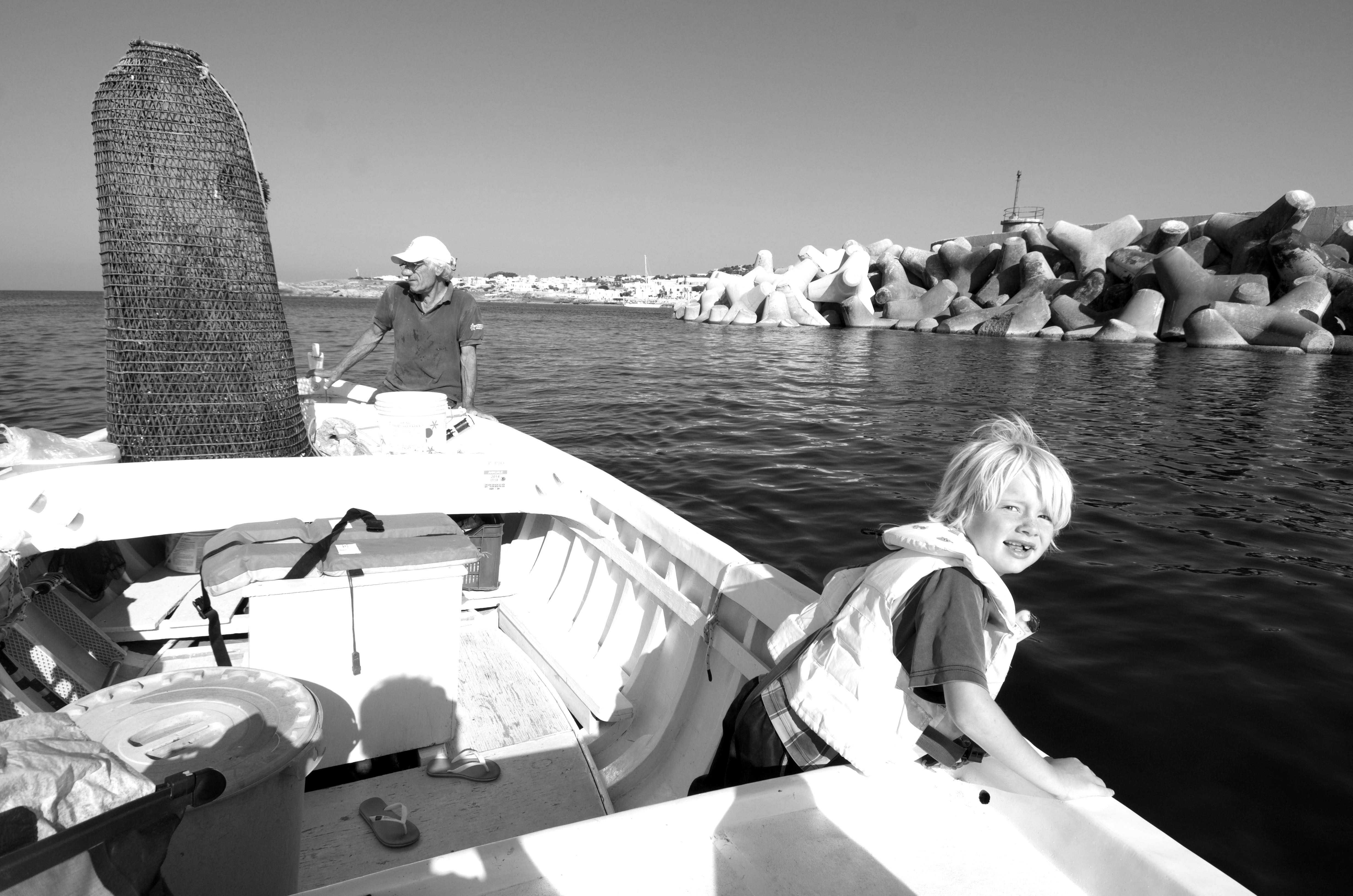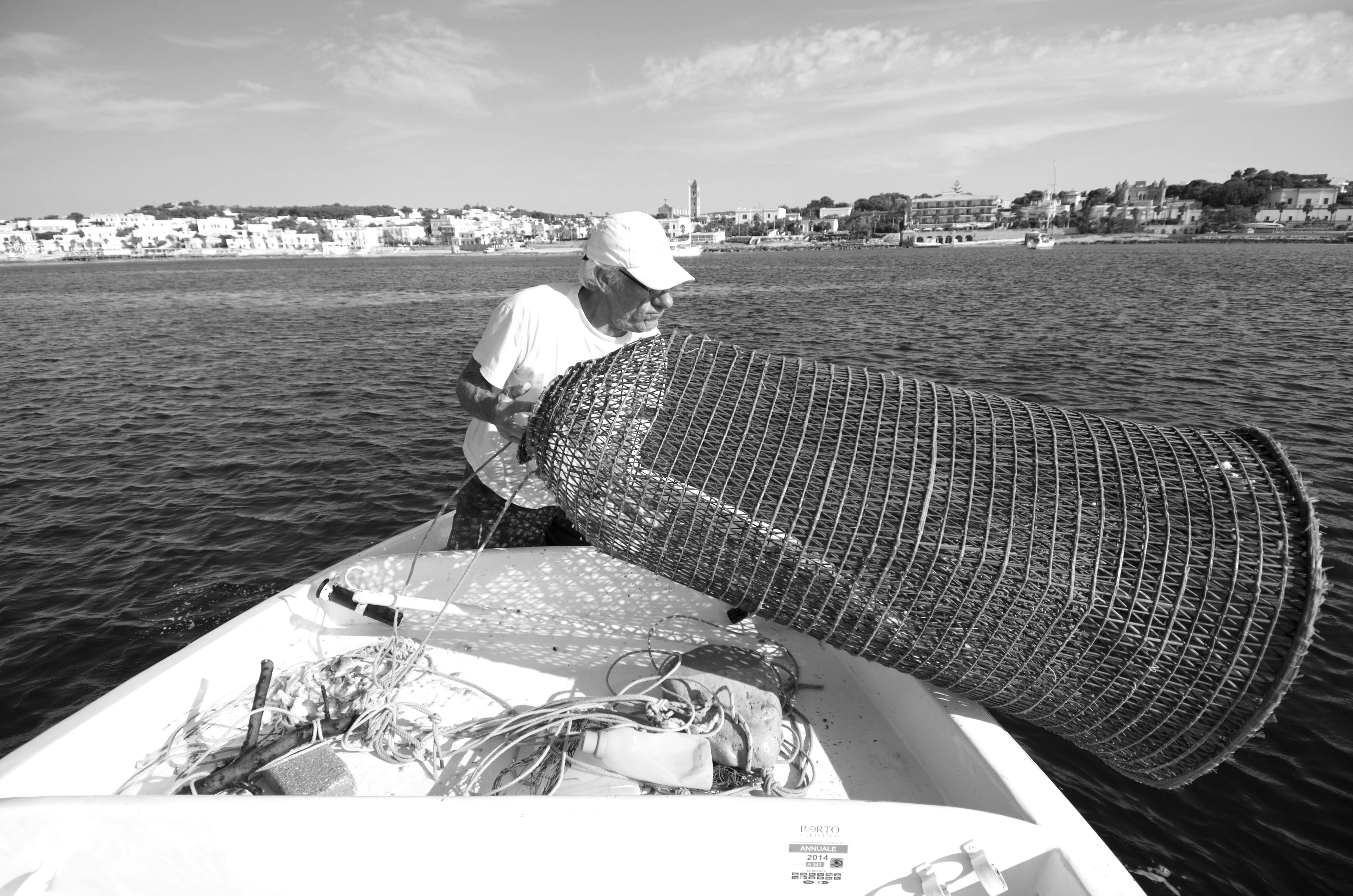 We wake up to the sound of: tuk tuk tuk, the sound of an old Volvo engine, itβs Luigi a local fisher, getting ready to take us out fishing. Liva and Tiuri are still half a sleep, drifting slowly out of the harbour, but as soon as the first fish traps are in sight they are all excited