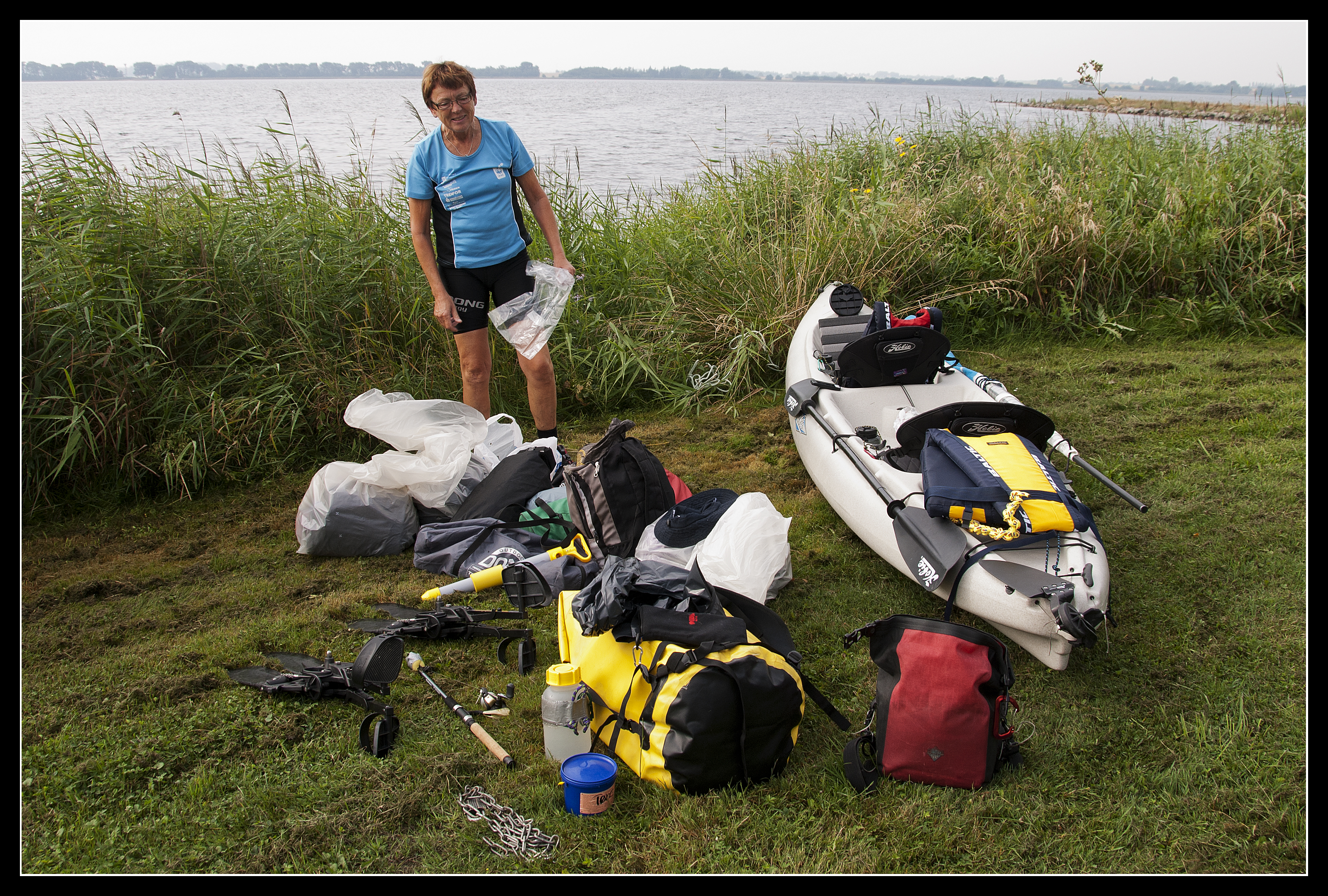 When we hit the water again and came under the bridge, the wind was stronger with a perfect headwind again. Tiuri sat in the front with my mum, so I was the only one working, hard work to just move forward with a average 3 km. I tried to set sail, but it was no help, too much wind and from the wrong direction. Four km before reaching the end, we had to stop, Tiuri was shaking from the cold. Every wave went over the kayak and with the wind in his face, he was wet and cold. On land he got some dry clothes on, and we sat him down in a big plastic bag, soon his was fine again. My dad called us, he could see that we were standing still on the GPS tracker, and askd if he should come and pick us up. Not a chance in the world, with only four km, that weather had to be a lot worse. The wind actually pick up and we had 11-12 m/s. But with Tiuri in the back in the plastic bag, we finished the last 4 k and could proudly go ashore. 90 km in three days, an awesome achievement for my 61 year old mother, my 6 year old son and me!!!